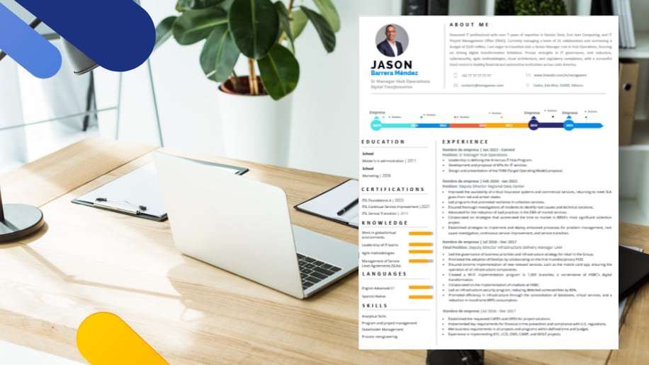 • Diseño Exclusivo para ti.Cada Perfil Laboral es diferente, tu eres diferente, por eso destacamos tu experiencia y habilidades acorde a tu perfil con un diseño exclusivo, solo para ti.
